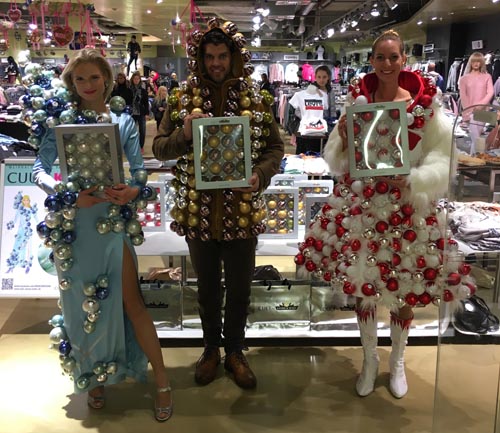 19. Oktober 2017: 800 Glaskugeln an 3 Kostümen - Weihnachttspromotion für Krebs & Sohn in Hamburg