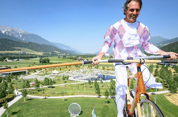 1. Juli 2019 - Up in the air: Ausnahmeakrobat Freddy Nock radelt und balanciert hoch in der Luft; wie immer ohne Sicherungsseile. Kostüm für Freddy Nock in Kooperation mit Roncall & Swarosvski. #blingbling